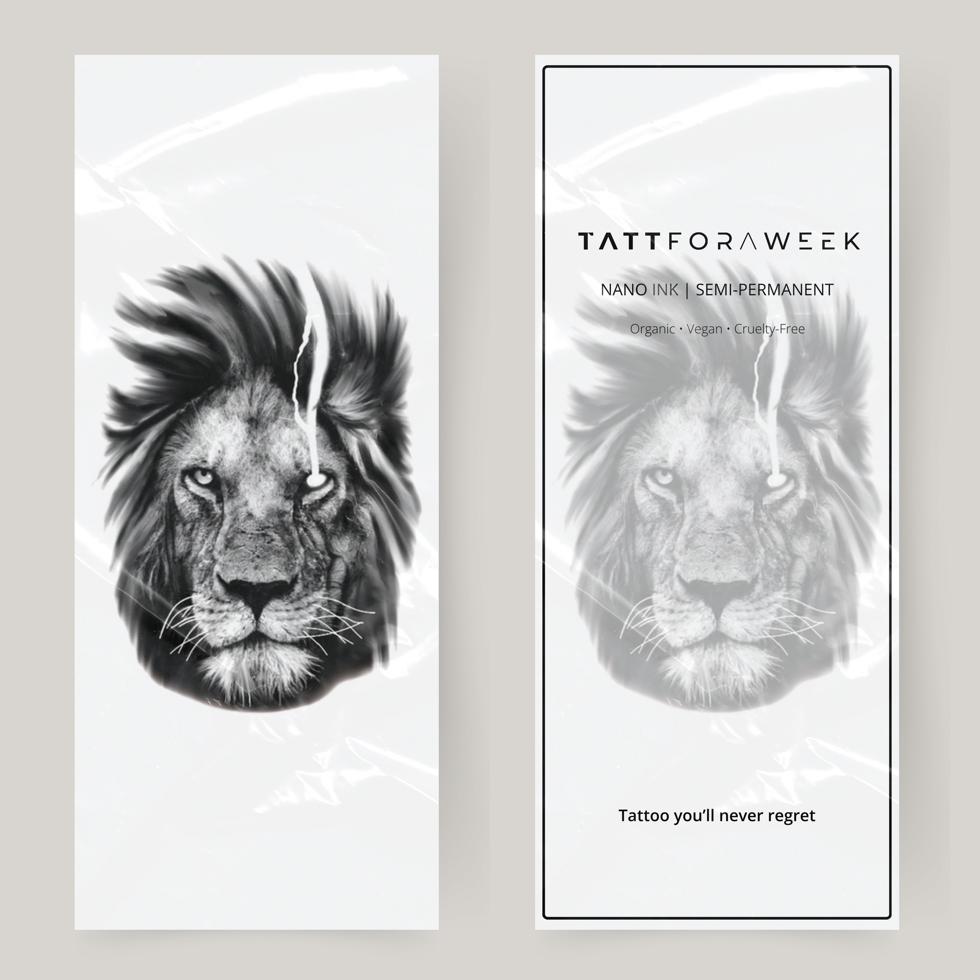 Un tatuaje temporal de león enojado puede permanecer colocado hasta 2 semanas.