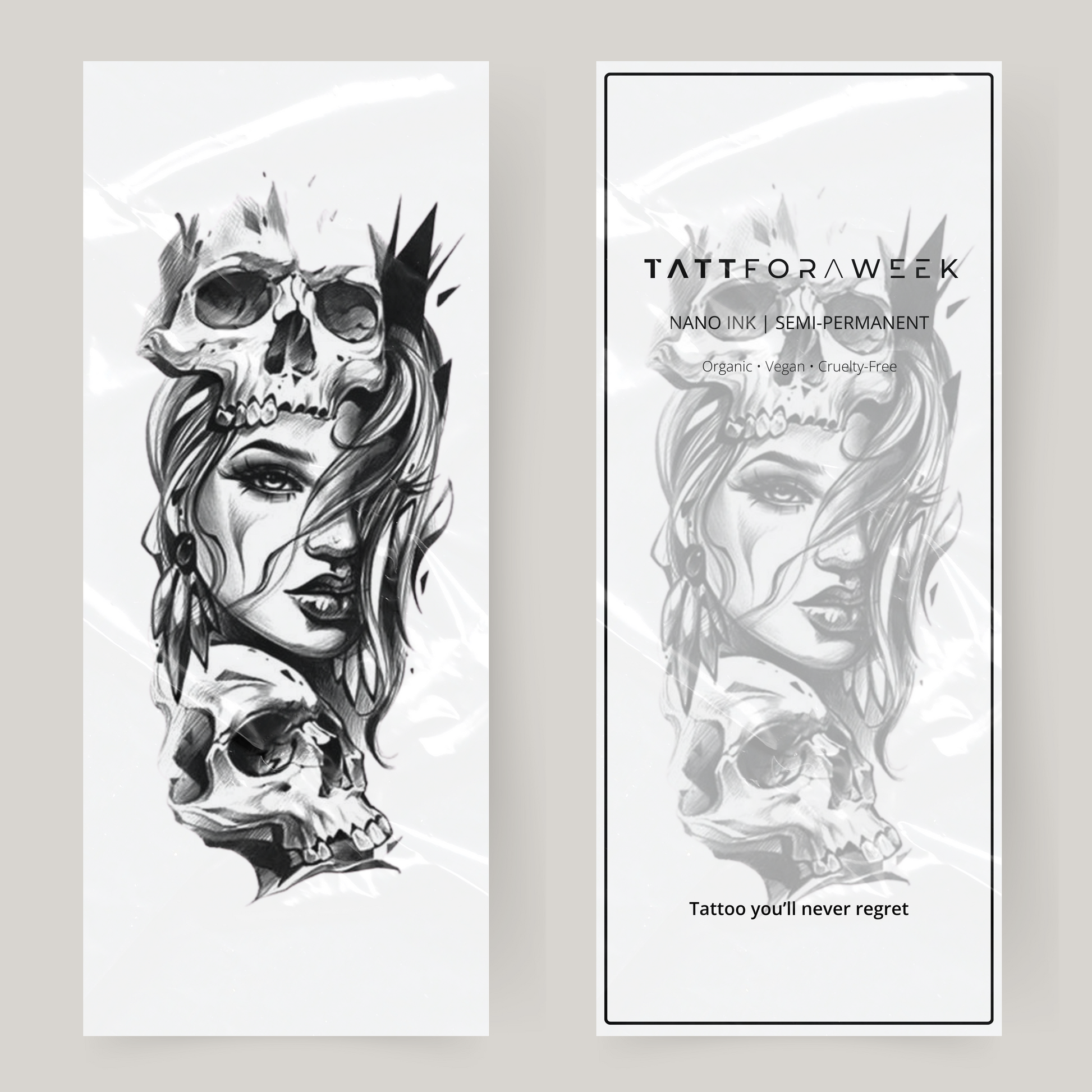 Un mujer y tatuajes de calaveras puede permanecer colocado hasta 2 semanas.